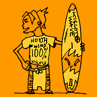 С собственной матчастью пока совсем тяжко, нут нет такой статьи в семейном бюджете, а матчасть Владимира Ильича меня устраивать перестала. Решил пойти посмотреть на другие серф-клубы. Из всех доверие вызвали лишь Норд-Вест и Северо-Запад, как близнецы-братья находящиеся рядом. Конструктивного общения в Северо-Западе не получилось, и я зашел в Норд-Вест, в котором хозяйничает Юрий Петрович. Тем более именно здесь я видел паруса Hot Sail Maui и короткие доски не в пример новее, чем у Владимира Ильича. Здесь я и решил обосноваться. С места тут же в карьер, я попросил Юрия Петровича поставить меня в петли немедленно. Ветер был 5 метров в секунду. Ю.П. сказал, что ветра не очень много для петель, но попробовать можно. Доска 160 литров, парус Super Freak 6,3. В моей голове произошла революция, неужели бывает такая матчасть, первое впечатление – парус необычайно легкий, доска жутко верткая. Но главное на этом всем безумно хочется кататься, просто огромное желание. На трапеции повис сразу же. Все оказалось проще простого, хорошо настроенные трапеционные кончики дали о себе знать. В петли встать не получилось. Катался 2 дня подряд. На второй день я пытался делать фордевинд на широкой доске. Пару раз получилось. Даже в переднюю петлю влез. Но главное, поразило огромное желание поделиться богатым жизненным опытом, исходящее от Ю.П. Это человек - вечный двигатель. Я был на станции два раза и все время он был на воде, делая что-то невообразимое с парусом, находясь постоянно в движении. С радостью поделиться всеми знаниями и опытом, рассказывает и показывает, что и как работает. Огромное желание возвращаться сюда снова и снова.